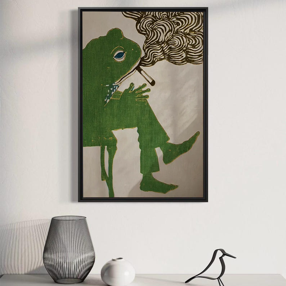 Frog Smoking a Cigarette Canvas Wall Art – Vintage Retro Funny Animal Print, Whimsical Frog Artwork for Bar Cart & Quirky Kitchen Decor