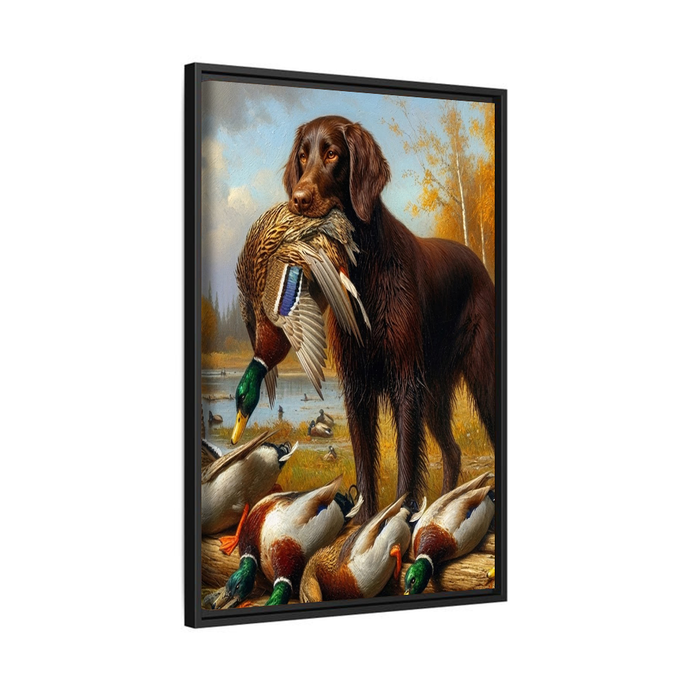Duck Hunting Dog Canvas Wall Art – Retriever with Mallard Ducks, Vintage Hunting Lodge Decor
